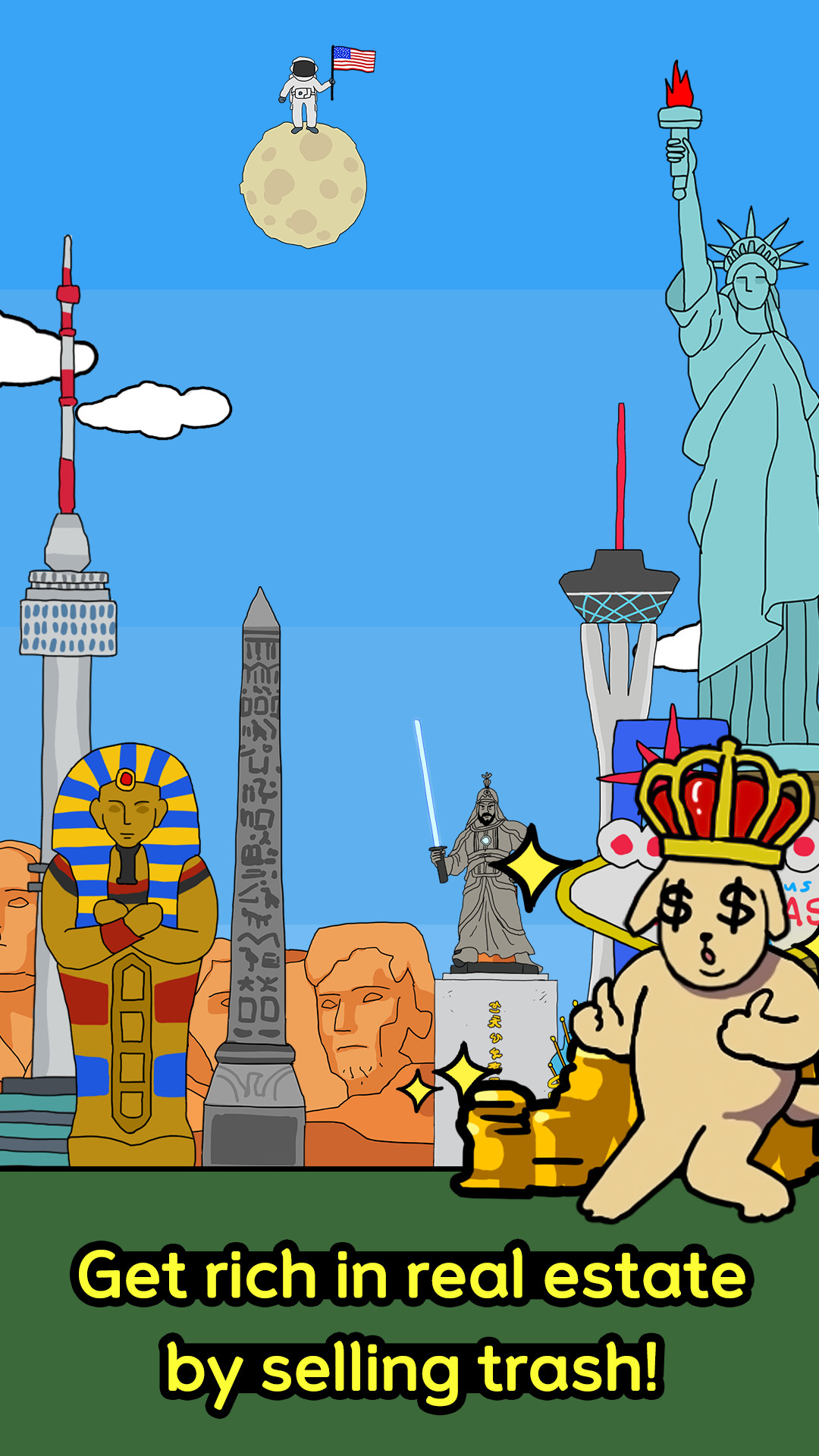 Trash King: Clicker Games на андроид — это игра в режиме ожидания с максимально простым геймплеем. В этой игре вас ждут чрезвычайно интересные и увлекательные миссии и испытания, которые подарят вам невероятно динамичный и весёлый игровой процесс. Вы станете чрезвычайно интересным безработным персонажем и должны будете сделать всё возможное, чтобы стать богатым королём и управлять самой развитой страной. Готовы ли вы сыграть в эту игру?